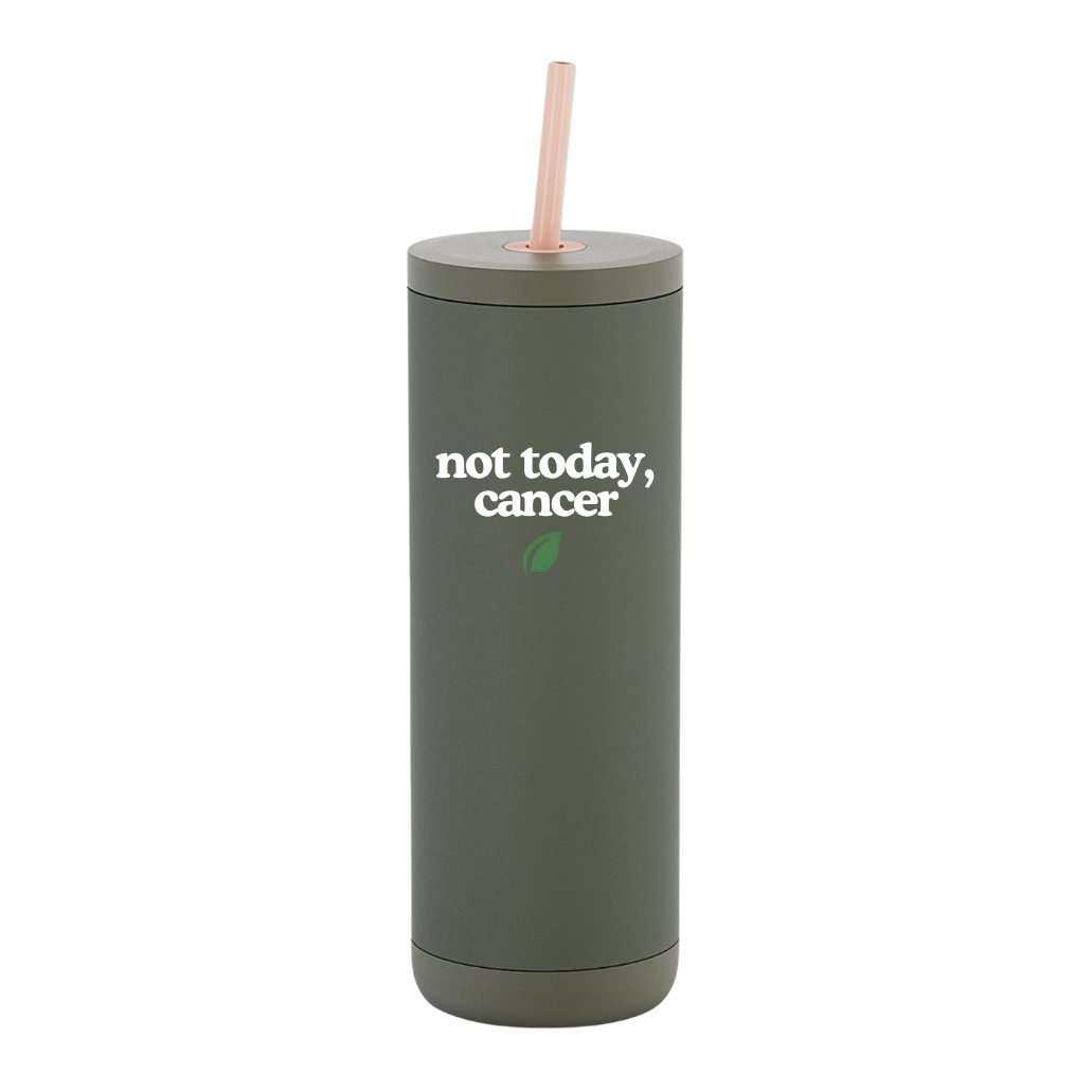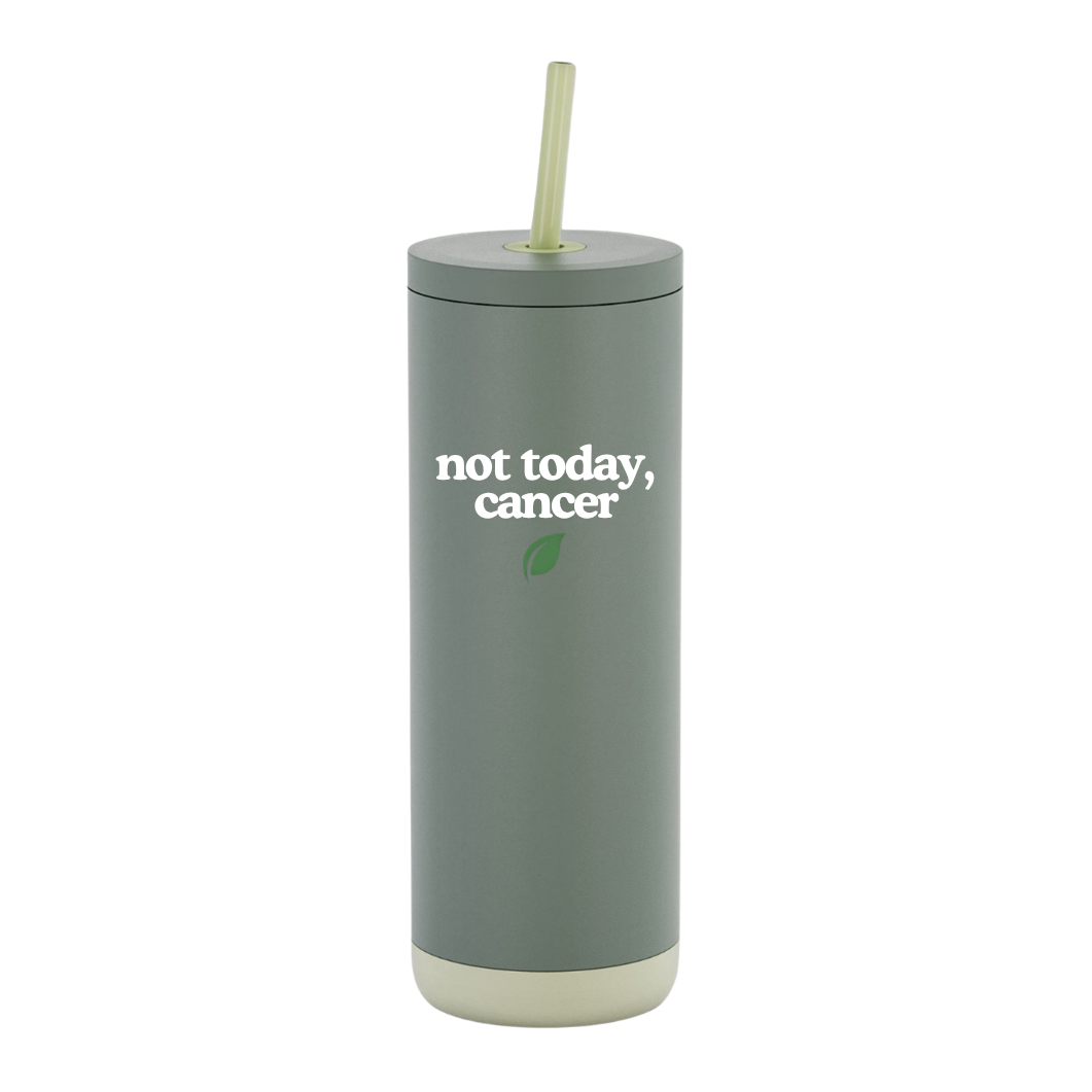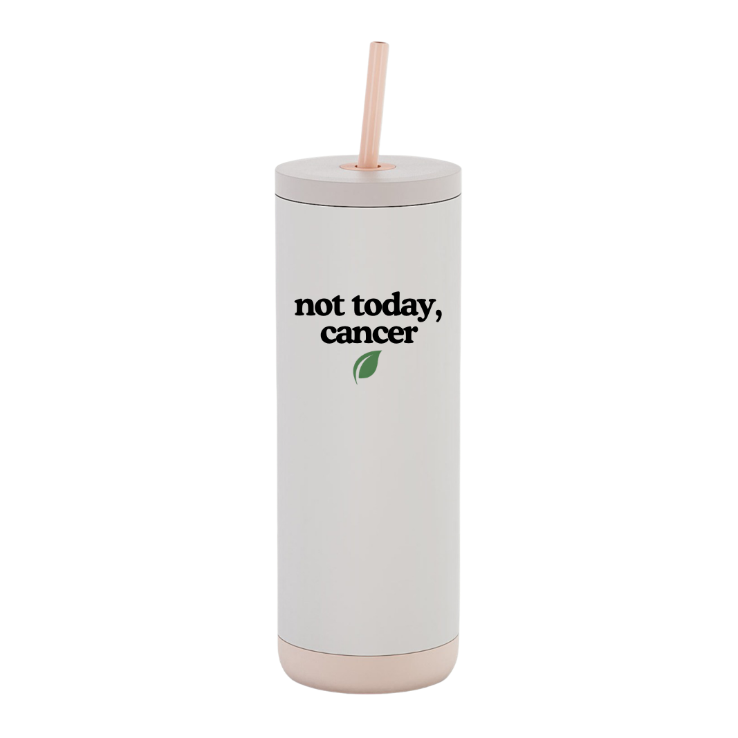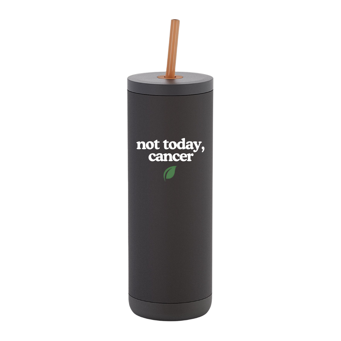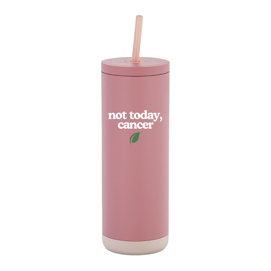 A slim 20oz stainless steel tumbler that carries a quiet, courageous message. The matte powder-coated finish and vibrant print make the phrase pop without shouting. Double-wall insulation locks temperatures in—hot stays warm for hours and cold stays crisp all day—while the press-on lid and colorful straw make sipping easy on the go. Lightweight and non-tapered, it slips into bags and cup holders and becomes a small daily talisman for someone facing treatment, supporting a loved one, or honoring survivorship.