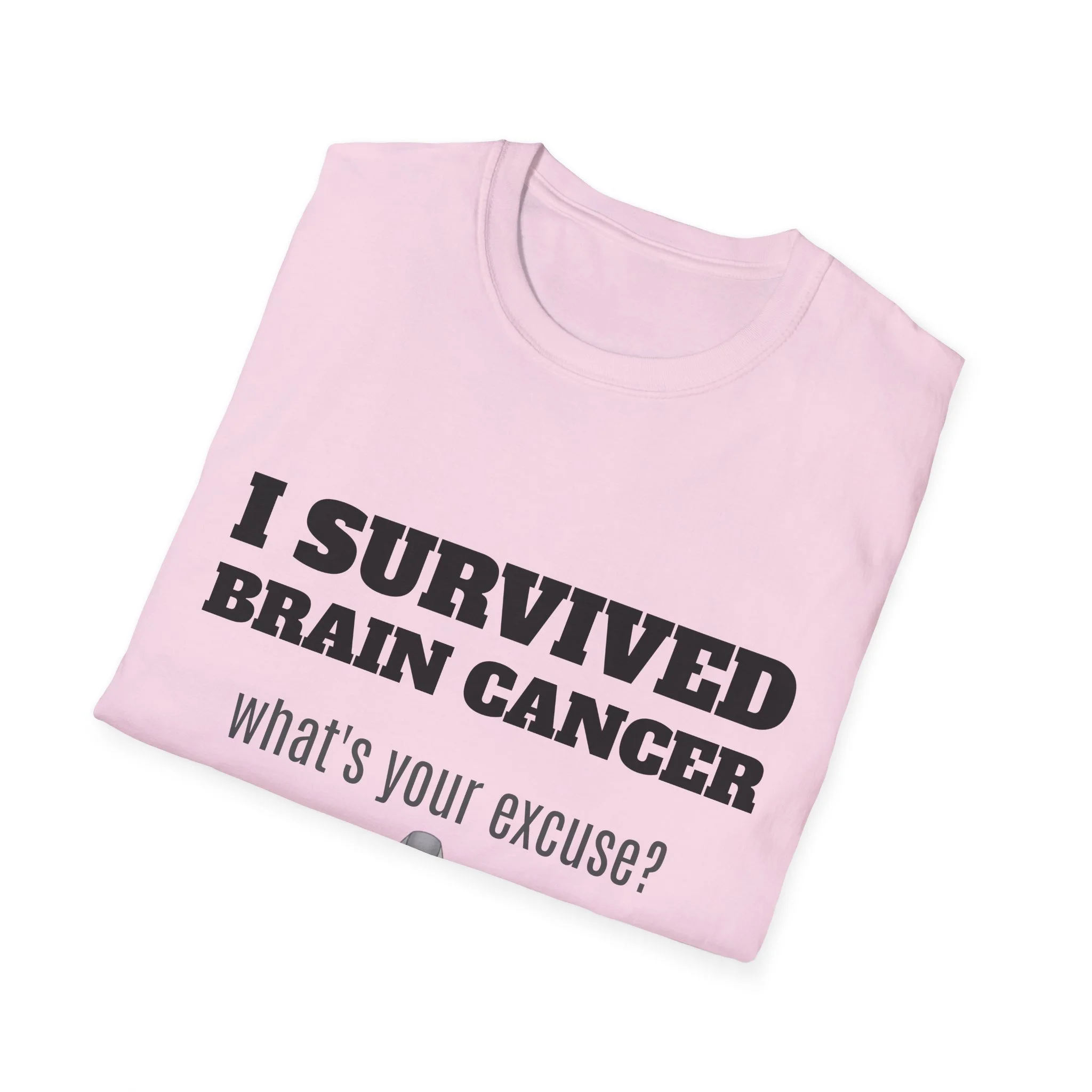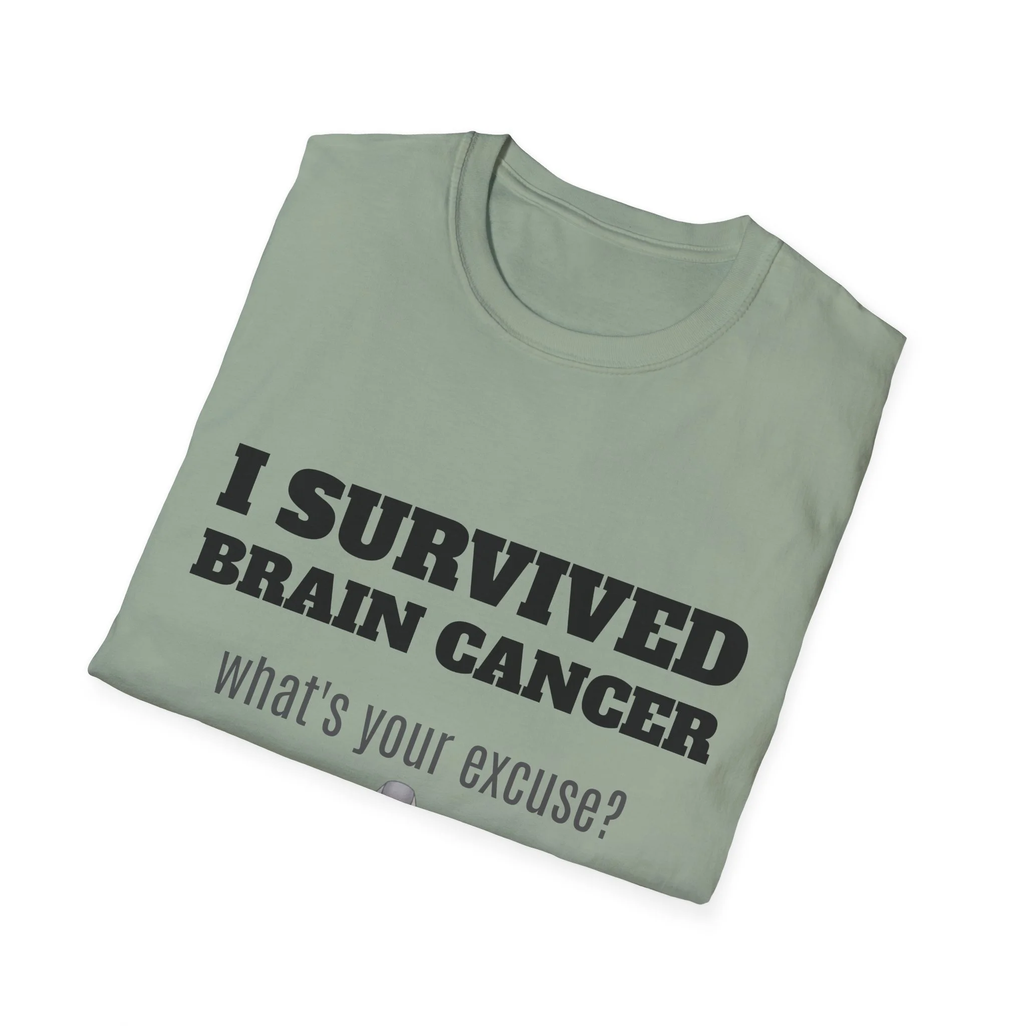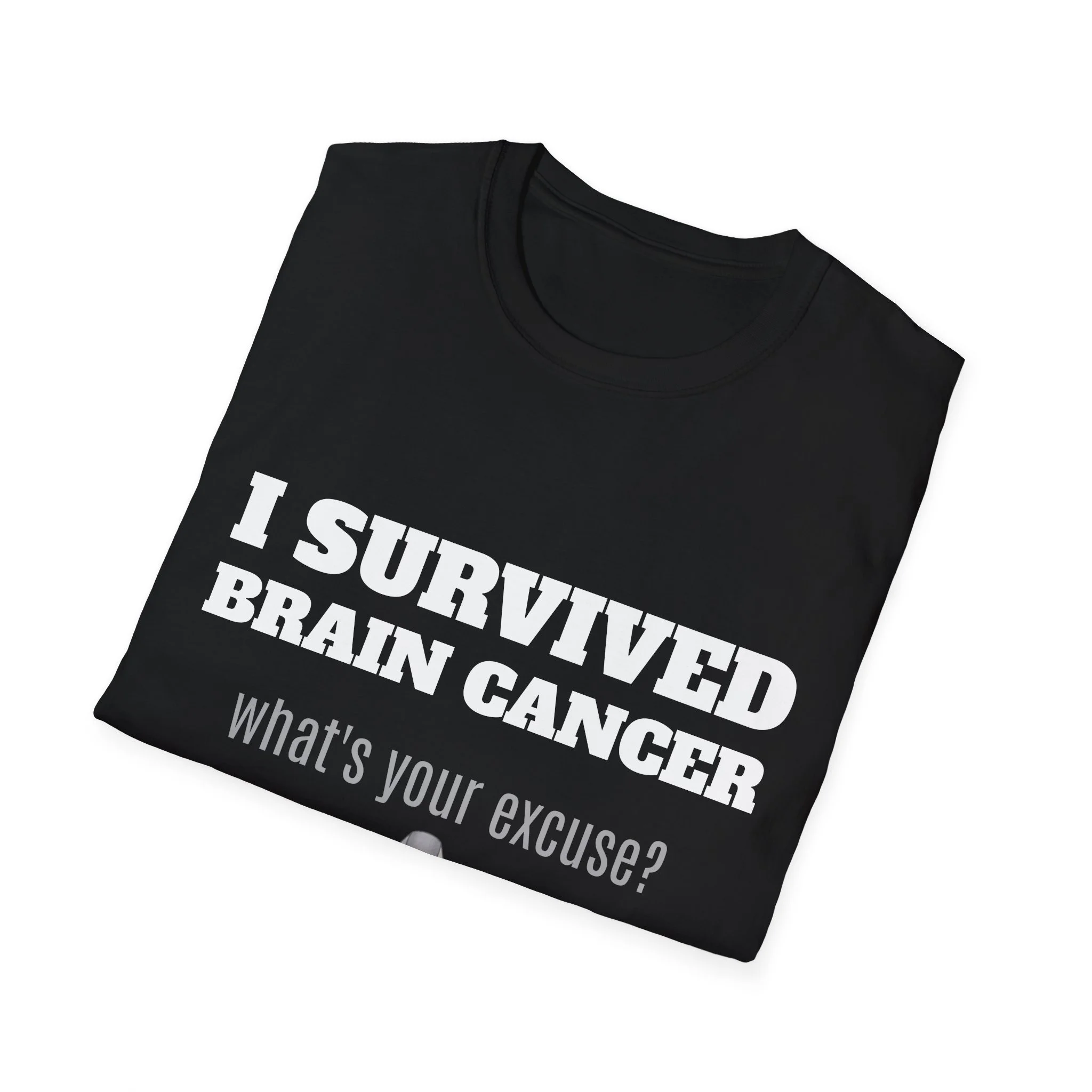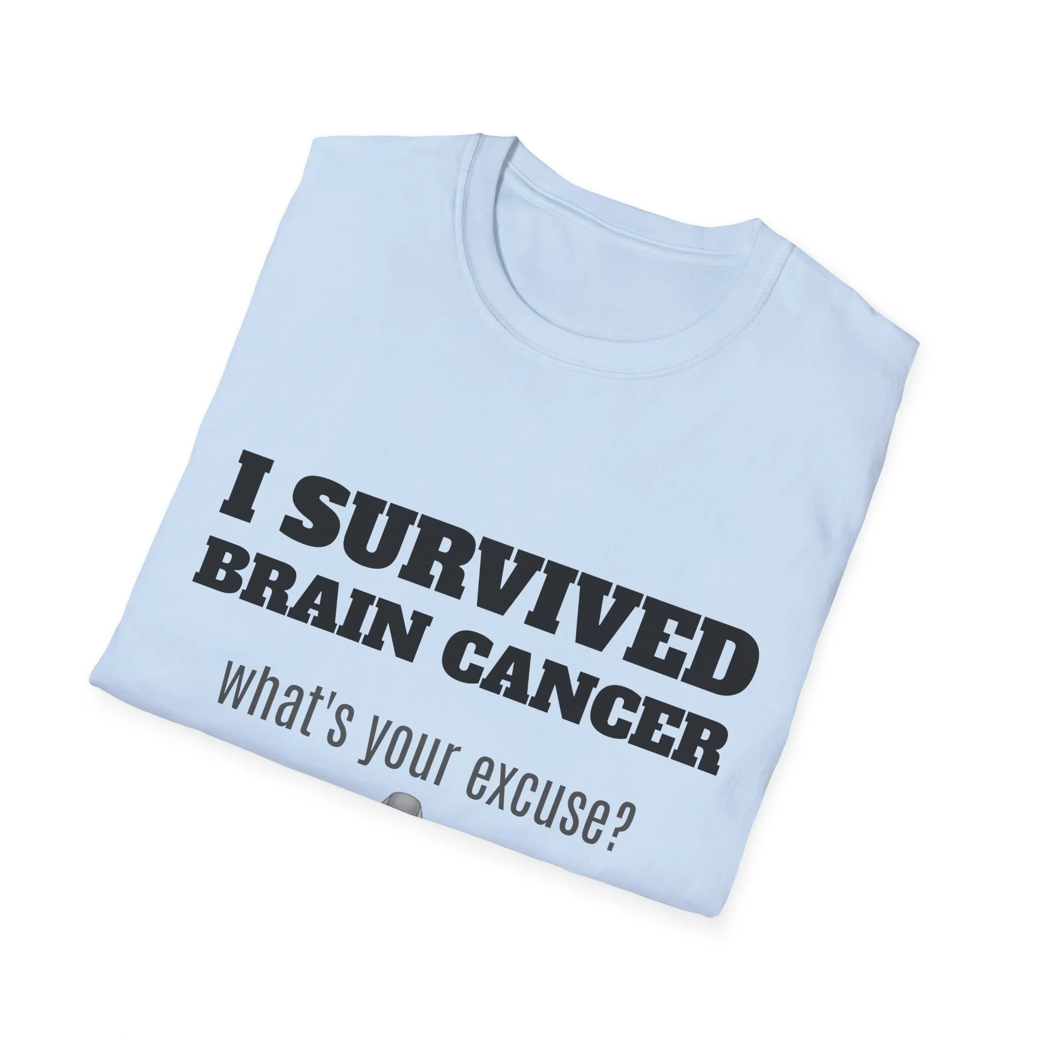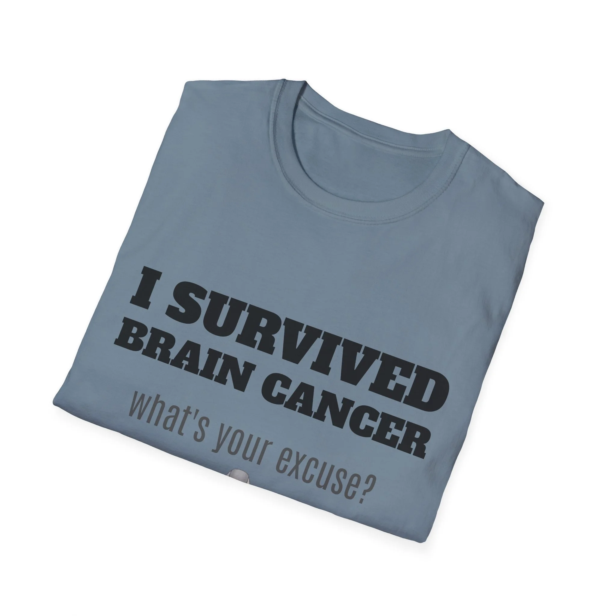 This lightweight, soft cotton tee carries a quiet but powerful message. The clean crew neck and classic fit make it a comfortable layer for days when you want your story to speak without shouting. A subtle gray awareness ribbon and bold text sit on the chest — worn by someone who’s come through a life-changing fight and now moves forward with confidence. It pairs easily with jeans or a zip hoodie for recovery appointments, casual meetups, or days when you want to acknowledge what you’ve been through without explaining it. Breathable, durable, and finished with a tear-away label, this shirt keeps the focus on living well and showing strength in everyday moments.