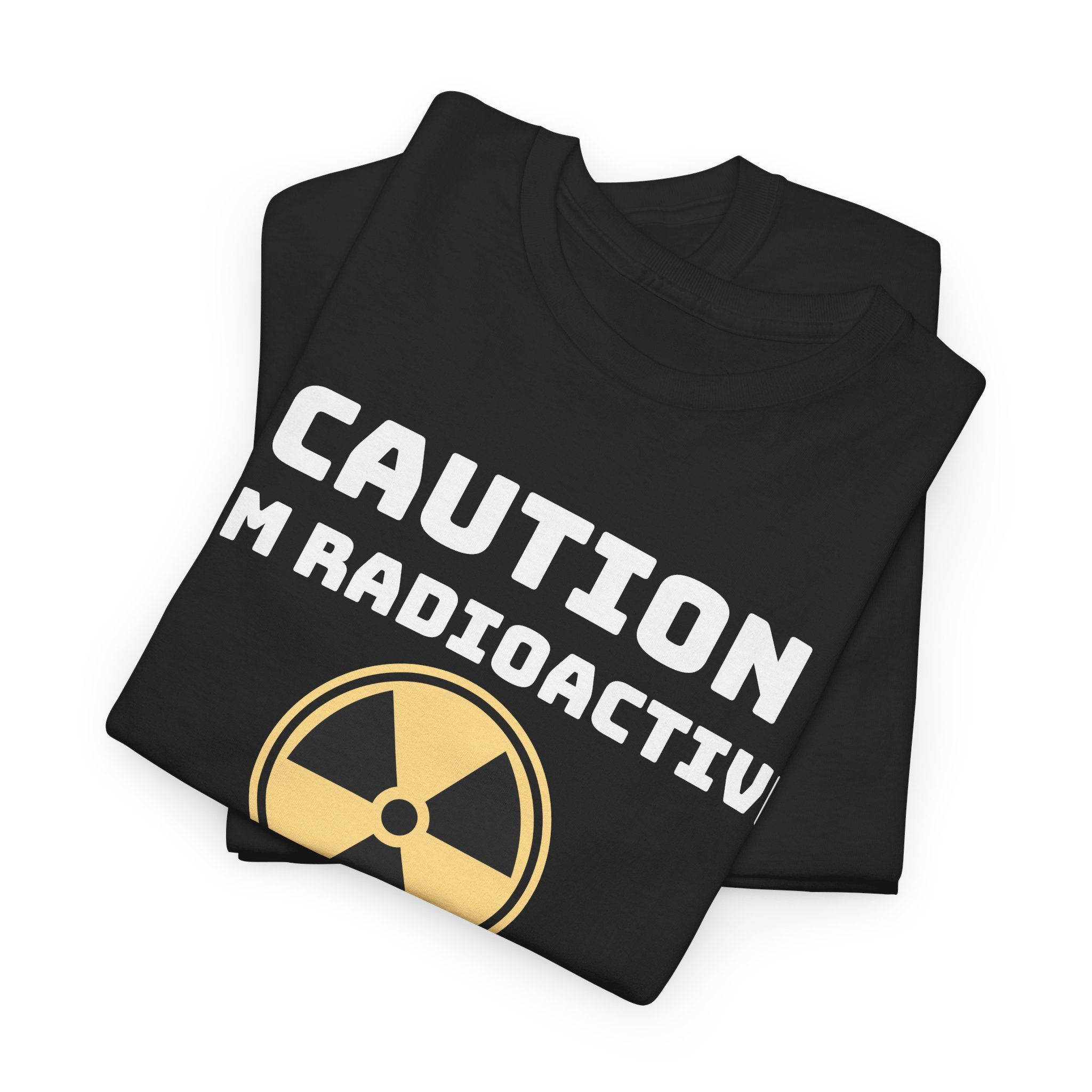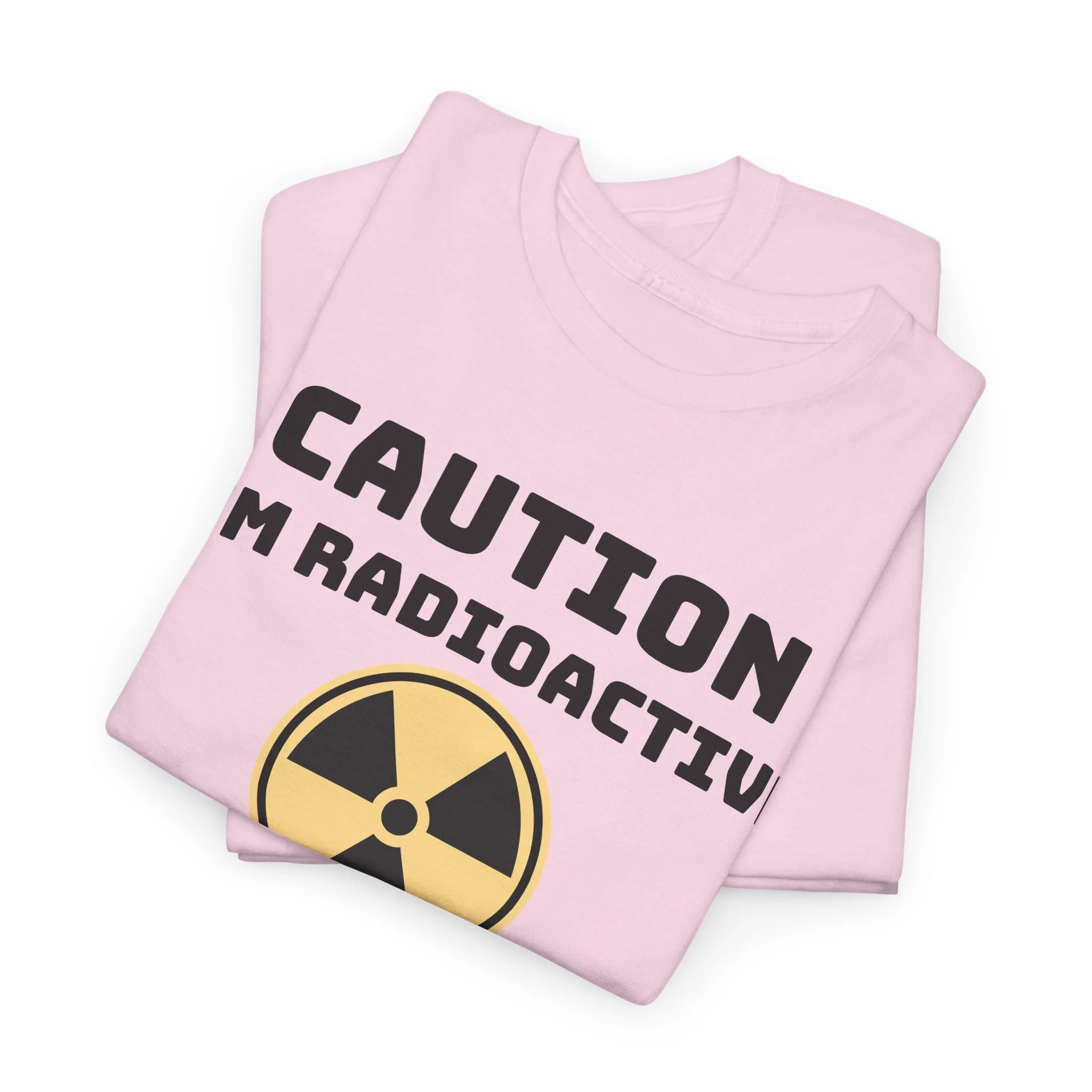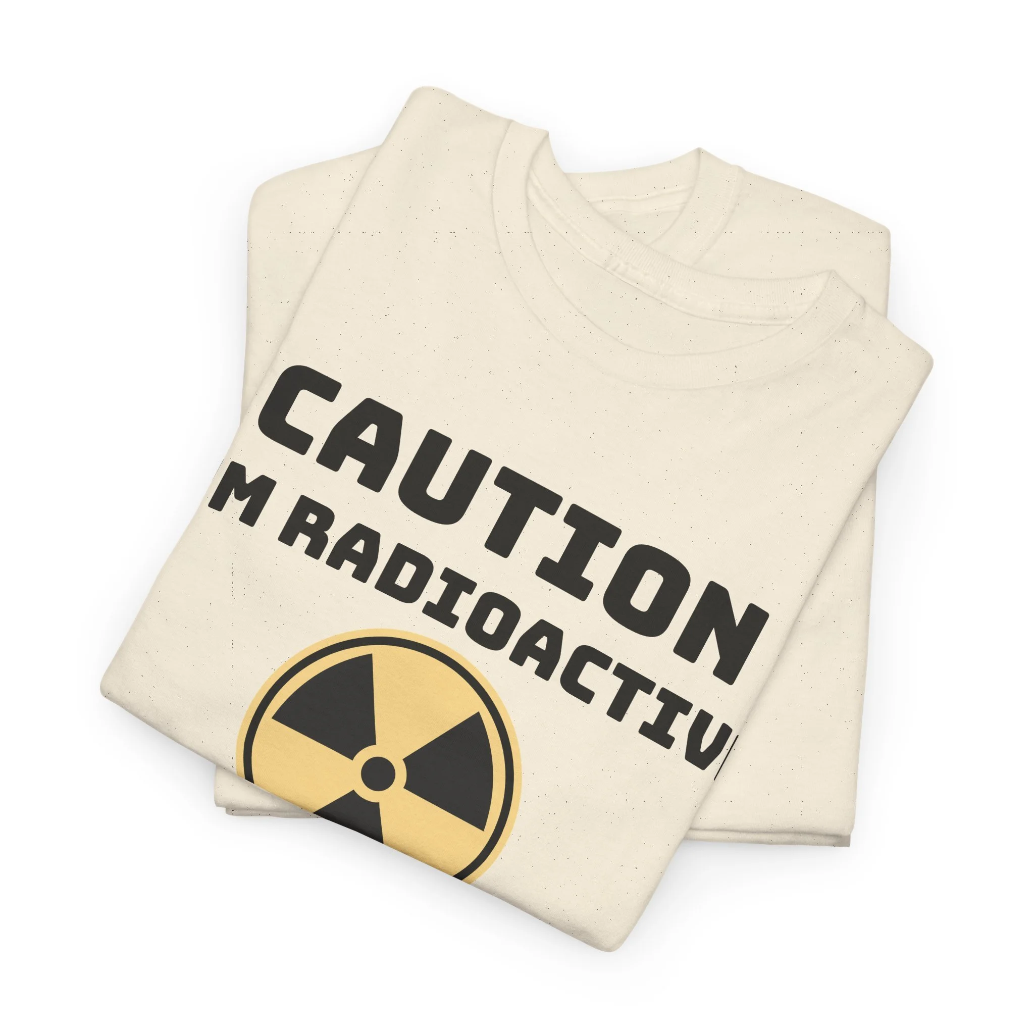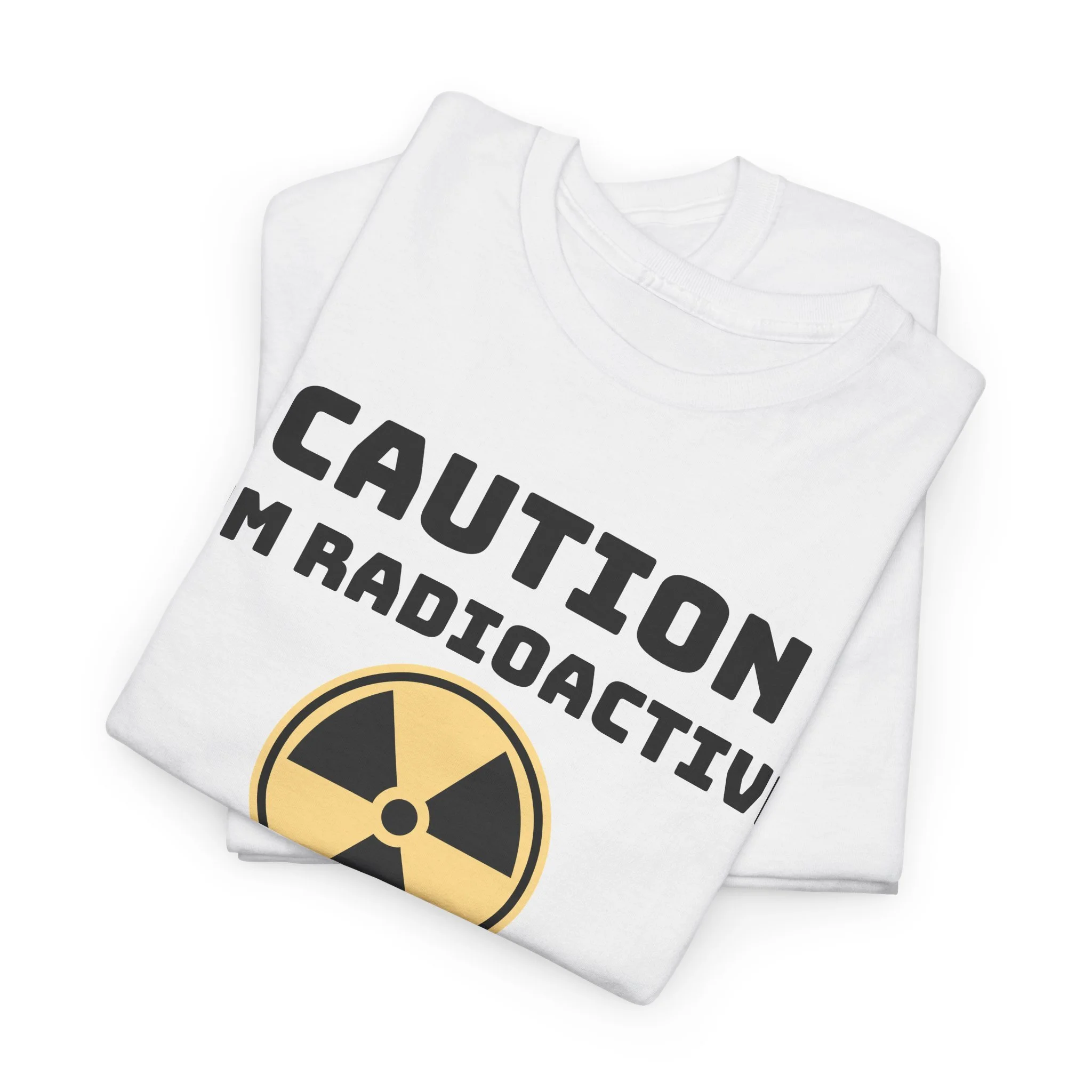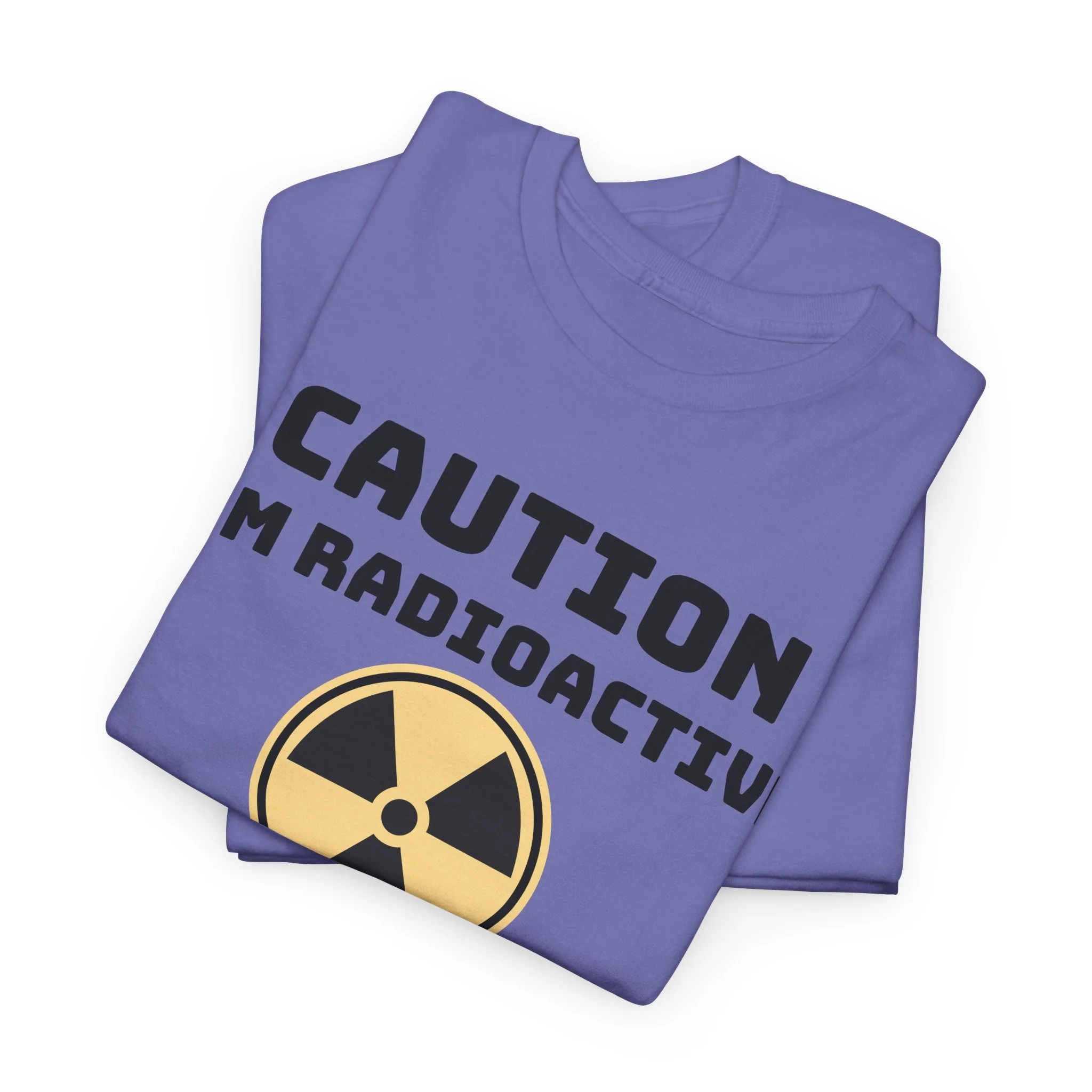 A relaxed, everyday tee with a playful scientific edge. The bold “Caution I'm Radioactive” lettering and classic radiation symbol sit centered on a soft canvas, giving this shirt a wink of dark humor while staying crisp and wearable. Lightweight yet sturdy 100% cotton (medium 5.3 oz) keeps the fit breathable for daily wear. The tubular knit body and ribbed collar hold their shape wash after wash, and shoulder tape reduces stretching so this tee keeps its silhouette. Wear it with jeans for a casual afternoon, let it be a conversation-starter, or use it to help find fellow survivors.