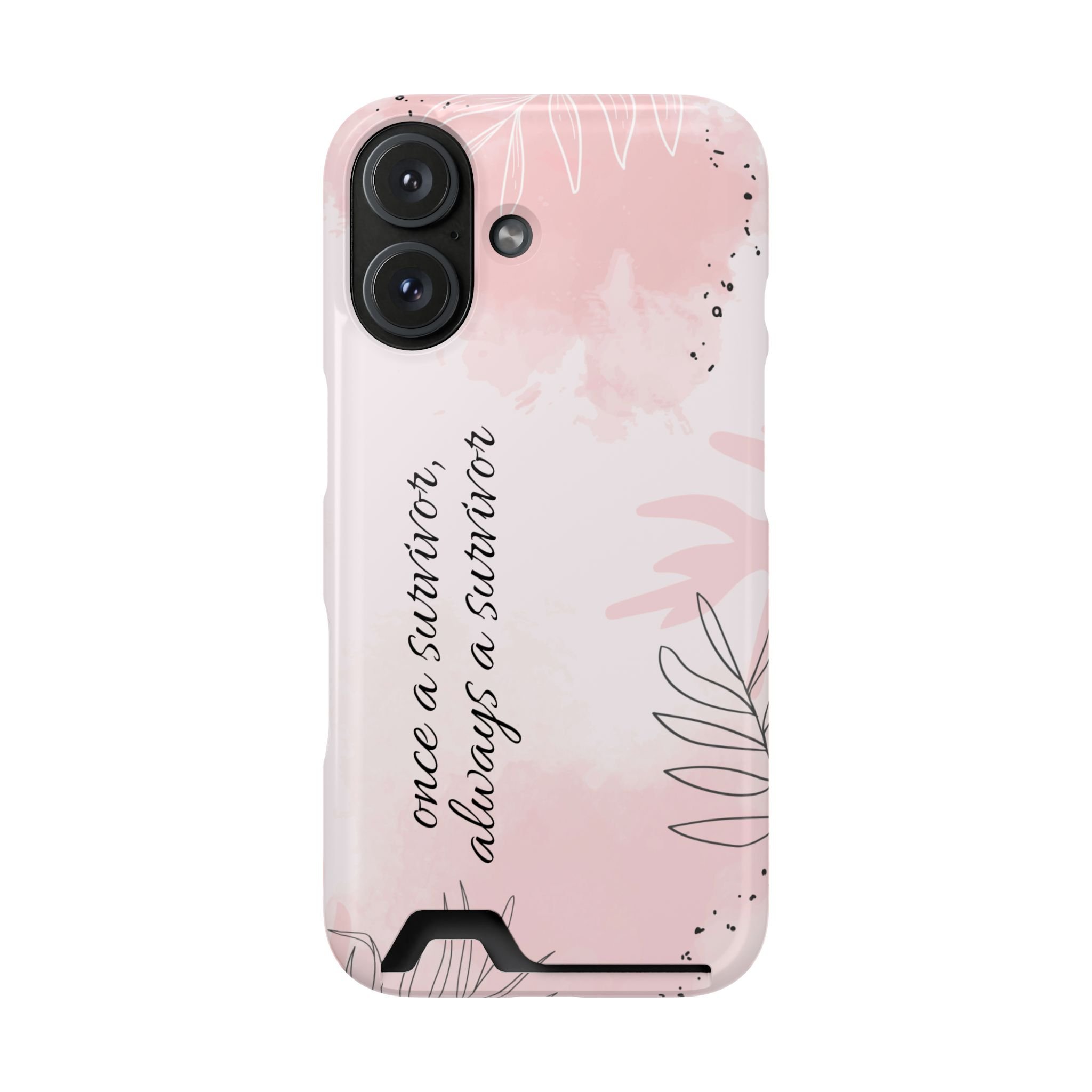 The lightweight yet impact-resistant polycarbonate phone case shields your phone from daily bumps while a back card slot keeps one essential card close at hand. Magsafe compatibility and open ports keep the case practical; choose glossy or matte finish to match your style. This case sits against your pocket or palm as a subtle reminder of courage and steady, everyday bravery.